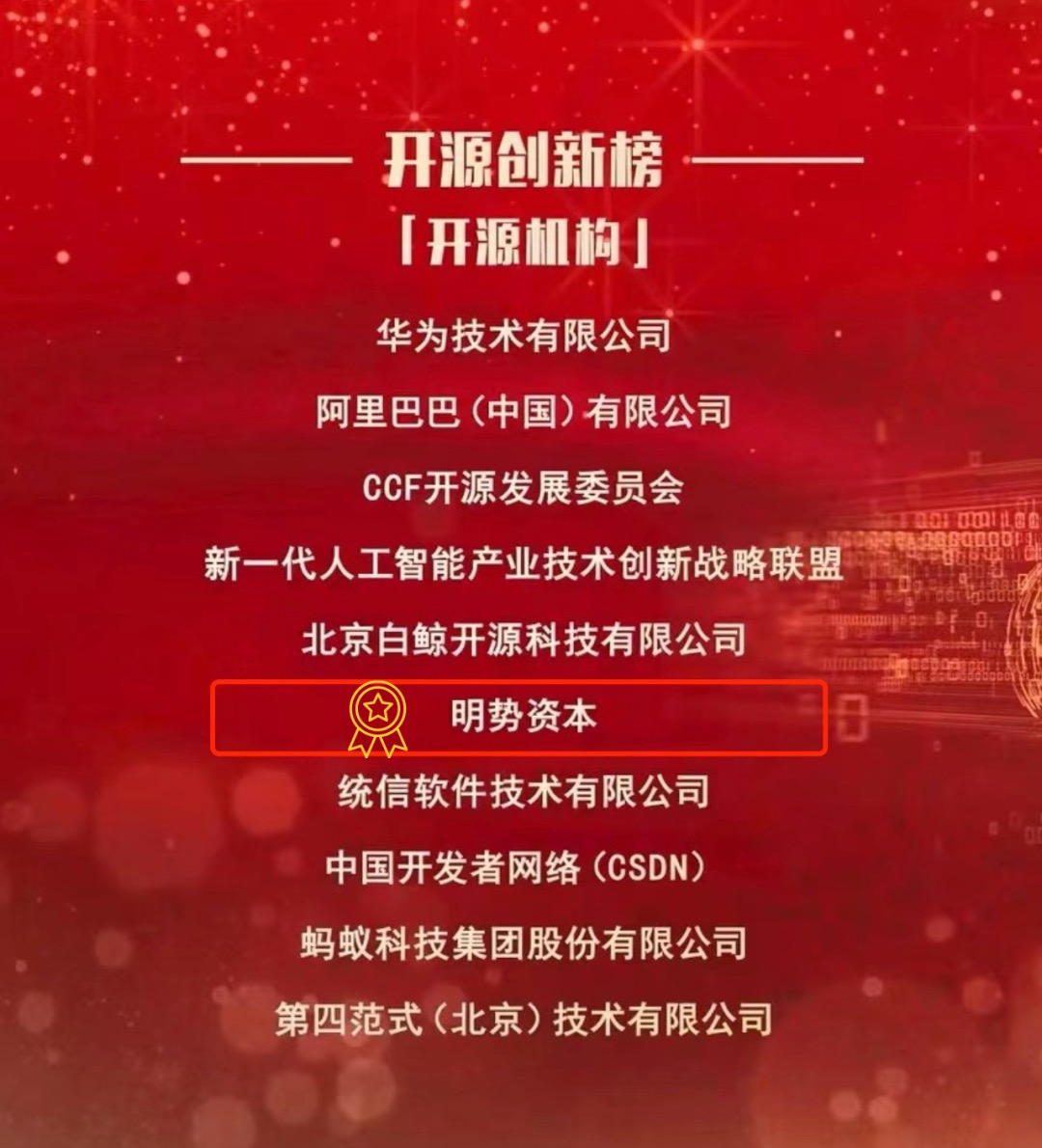 2月20日,中国科协召开2023“科创中国”年度会议,在本次会议上揭晓了2022年“科创中国”系列榜单。明势资本入选了“开源创新榜”中「开源机构」榜单,明势资本也是此次开源创新榜评选中唯一入选的投资机构。开源创新榜是由“科创中国”开源创新联合体负责征集评选,此次共有30项在中国开源行业领域具有创新性、贡献度和影响力的产品、社区、机构上榜。